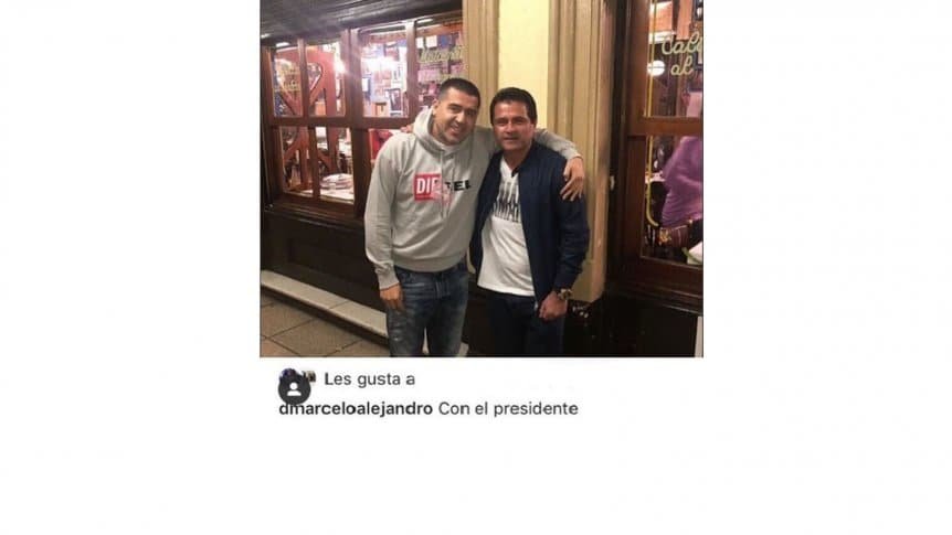 'Con el presidente' dicta la descripción de la foto que Marcelo Delgado subió a su Instagram -que se encuentra en modo privado- junto a Juan Román Riquelme, y se difundió por la mañana en el resto de las redes. El 'chelo', íntimo amigo del diez, volvió a encender la posibilidad de una candidatura al igual que a mediados de marzo. En aquella ocasión, había dicho que "después de mucho tiempo, Román está pensando seriamente en presentarse''.